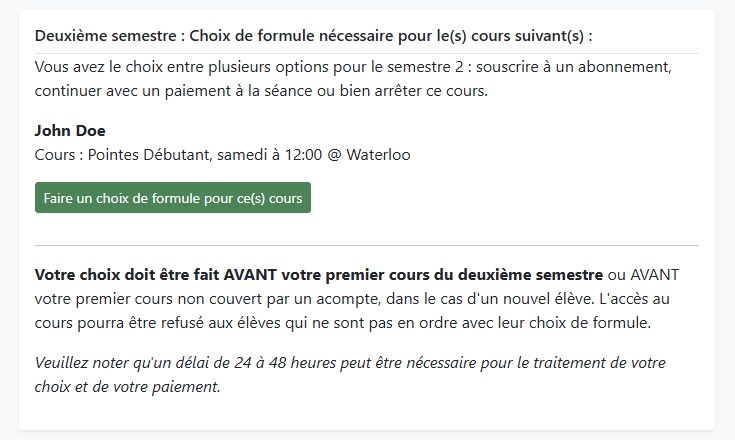 Sur la page d’accueil de votre espace personnel, cliquez sur « Faire un choix de formule » pour le(s) cours disponible(s).