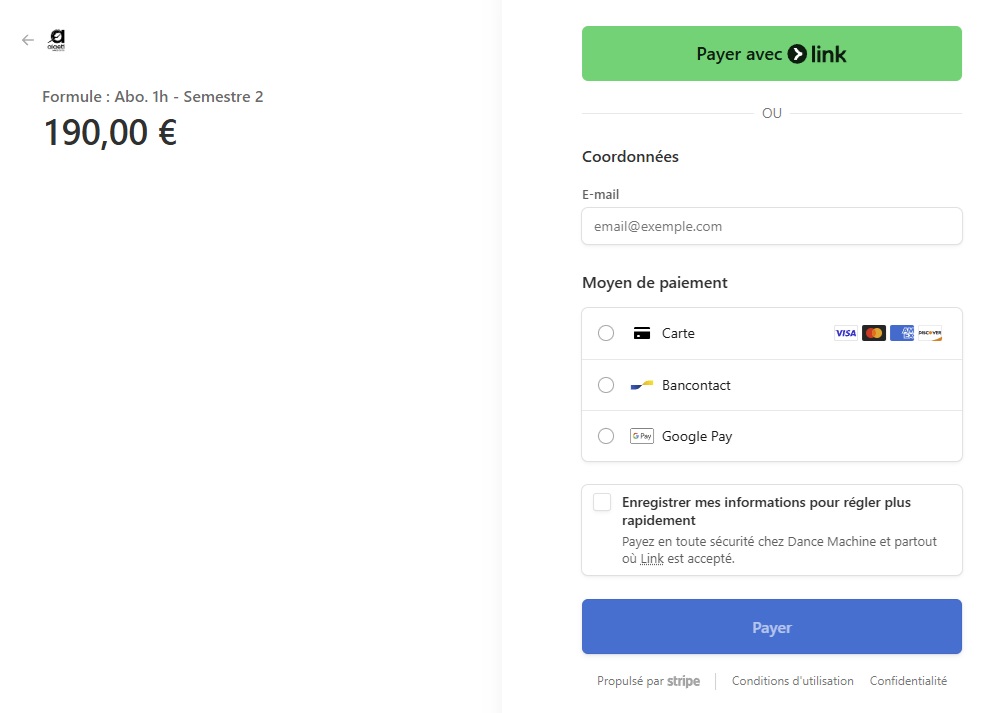 Cette étape est identique pour le paiement à la séance et pour le paiement de l’abonnement.
